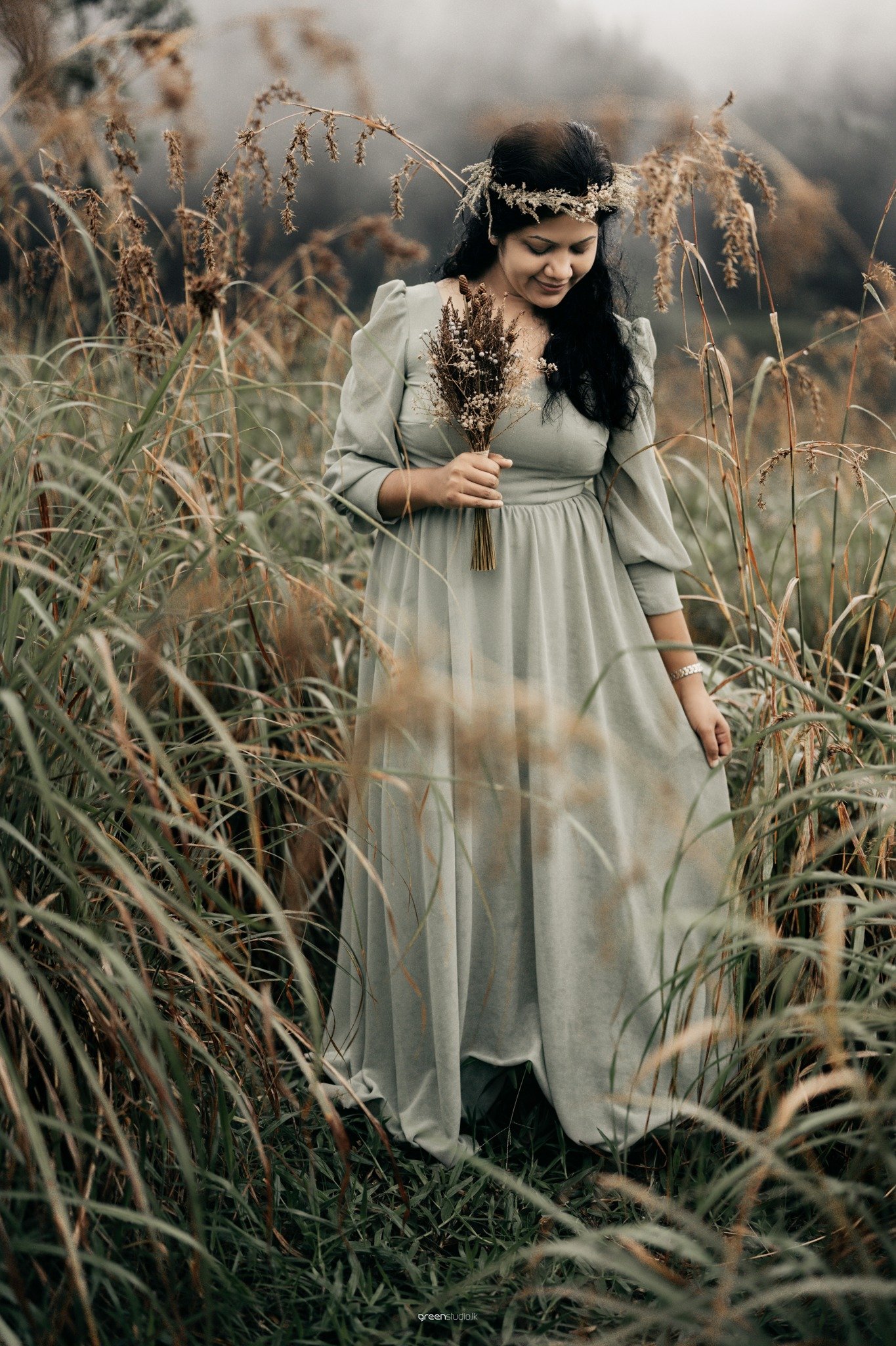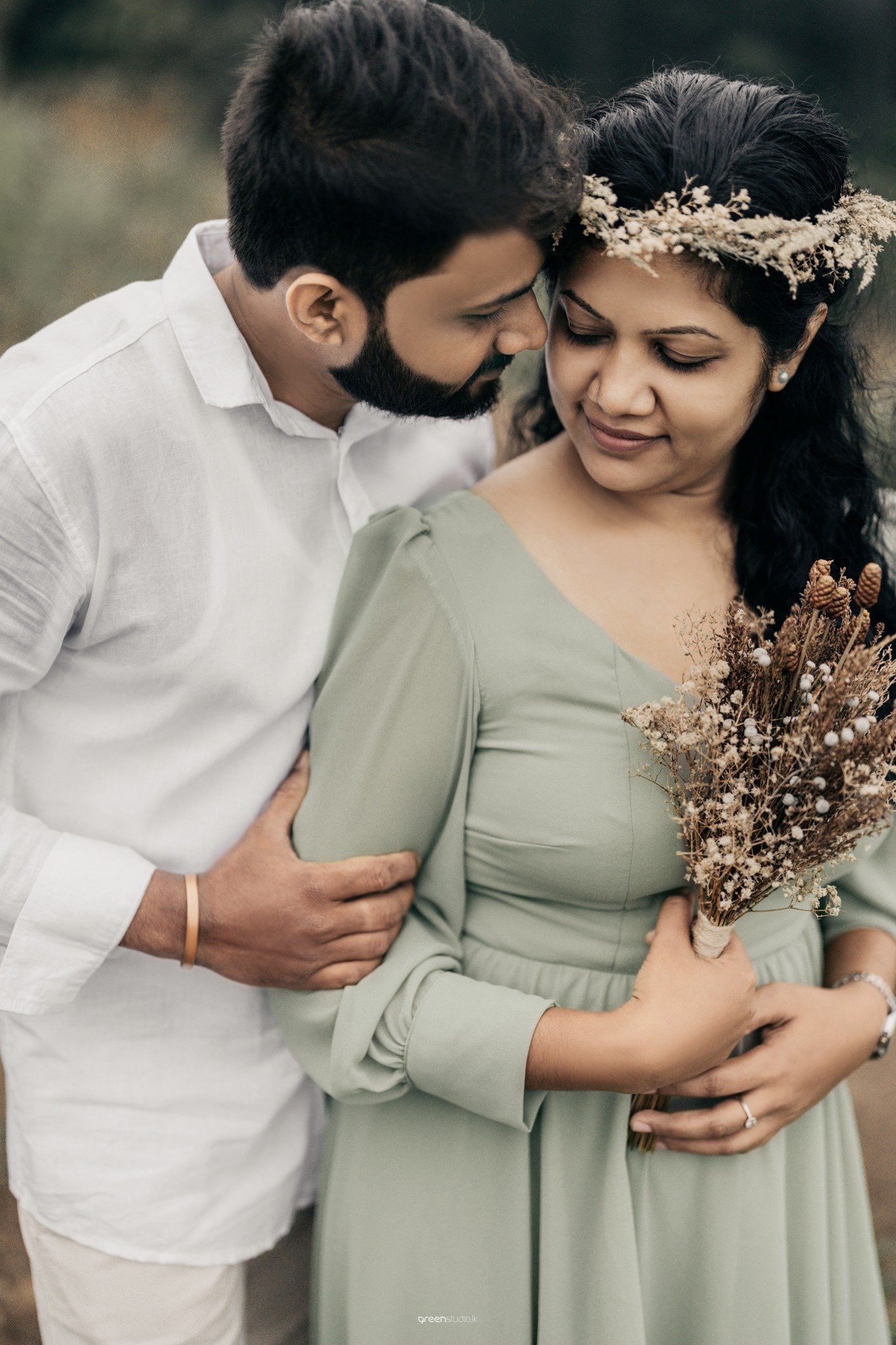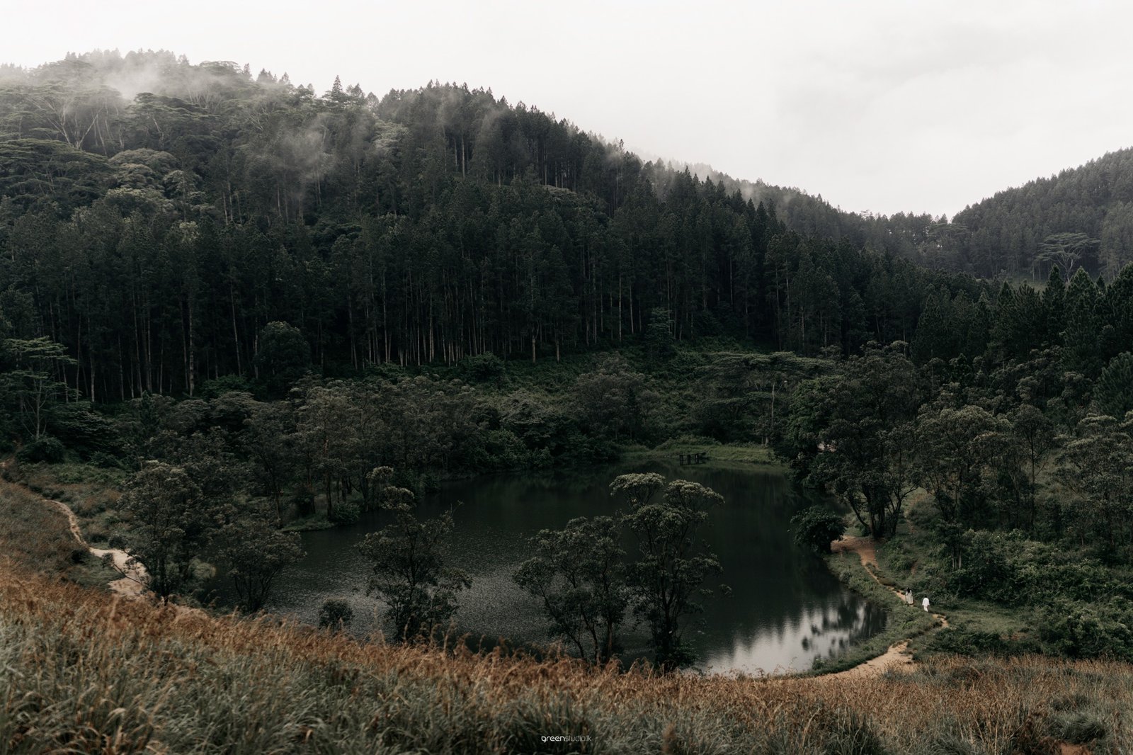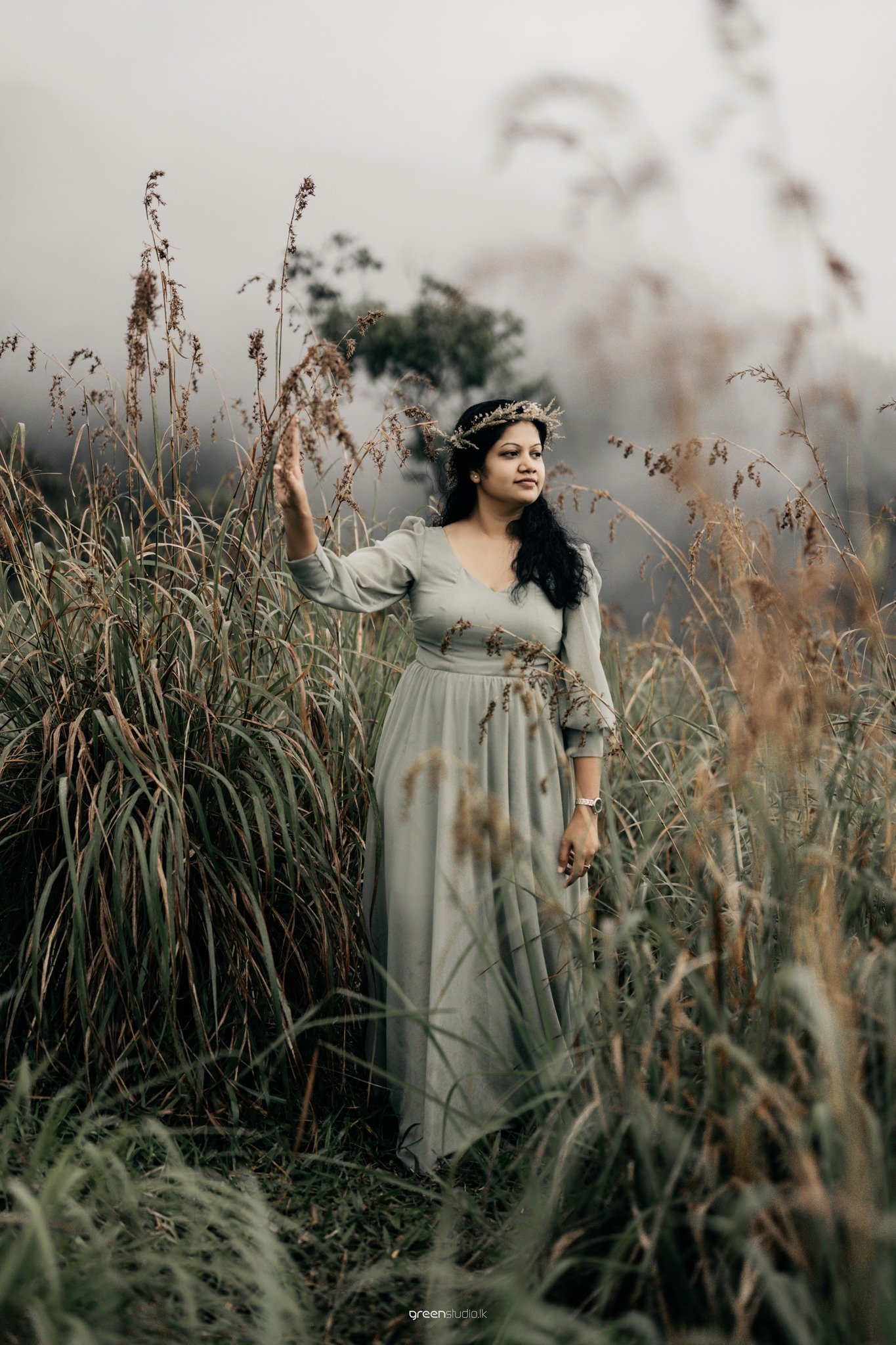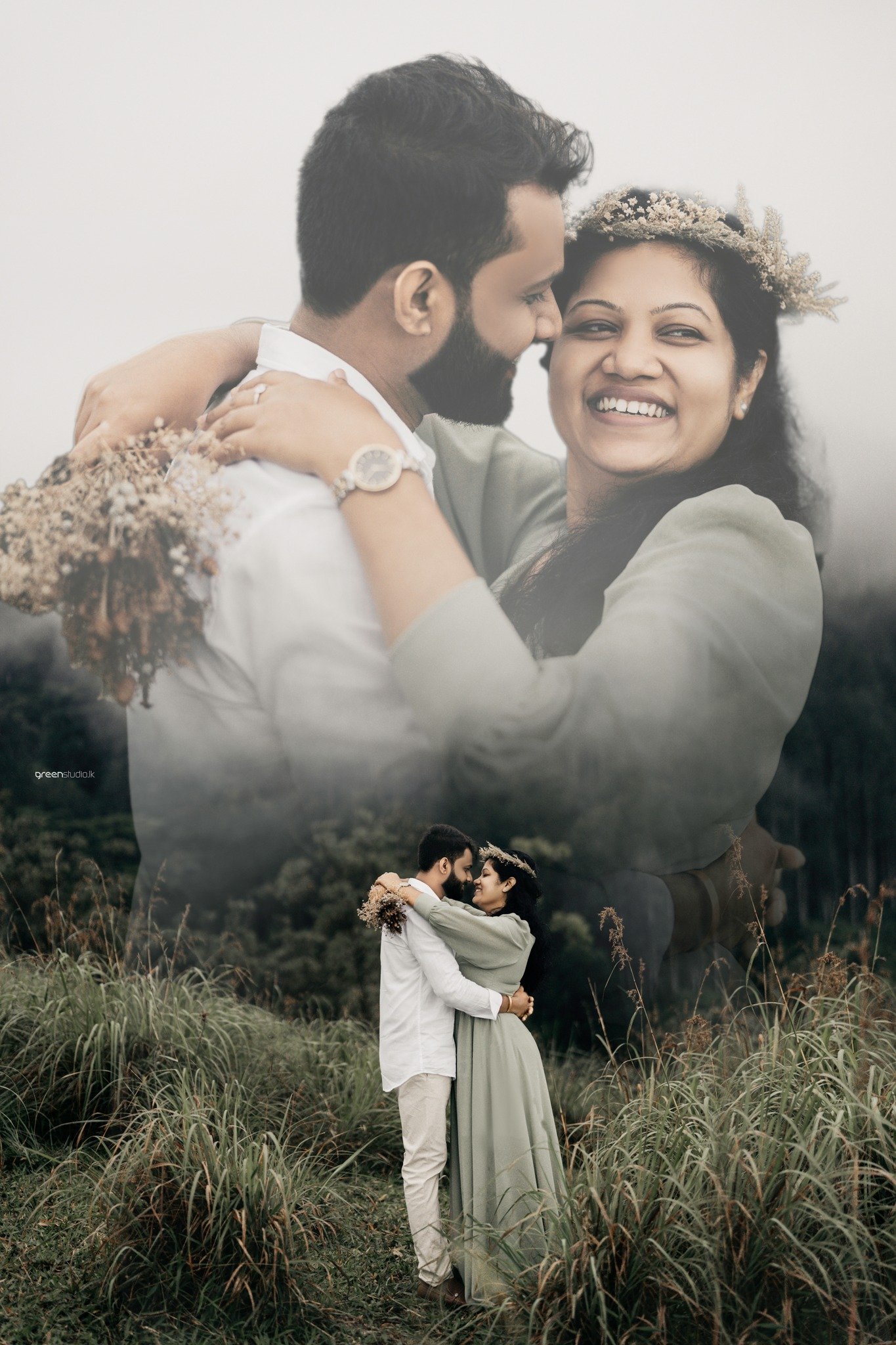 They arrived just as the mountains held their breath, grass bowed with dew and clouds drifting low. Hand in hand, they wandered into the fog, small against a sweep of ridgelines and a silver lake below. Laughter warmed the cold air—an embrace at the cliff’s edge, a crown of wild grasses tilting in the wind, his white shirt and her sage dress echoing the landscape’s calm. We paused often: for a quiet portrait among tall reeds, for a wide view where valleys rolled like waves, and for a soft double exposure that felt like two heartbeats layered as one. Every frame is simple and spacious—earth tones, honest smiles, the hush of weather—and the feeling that love, like mist, can turn a vast place intimate.