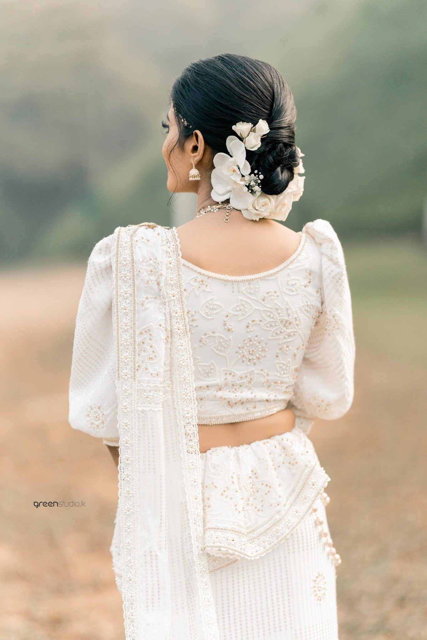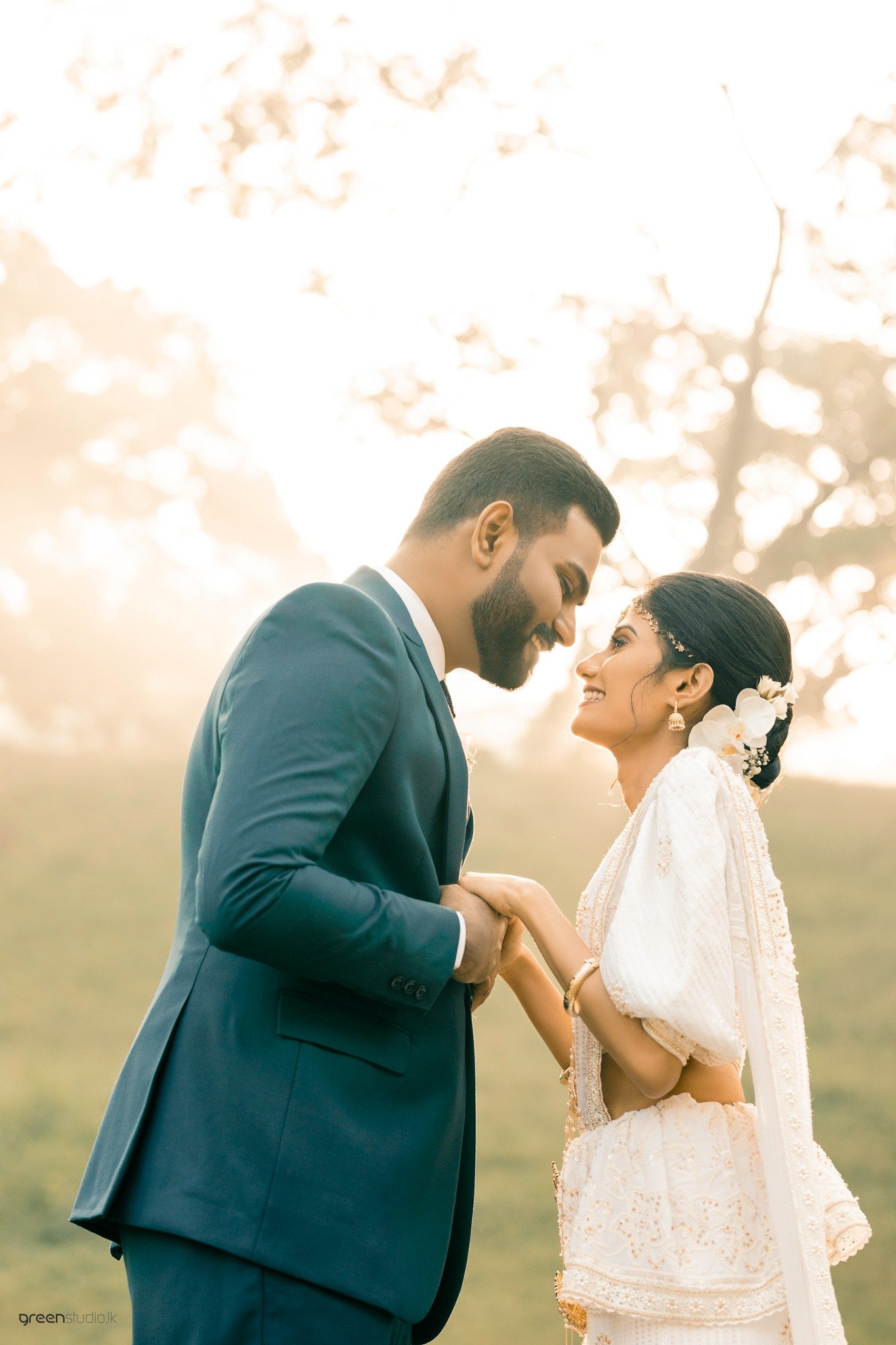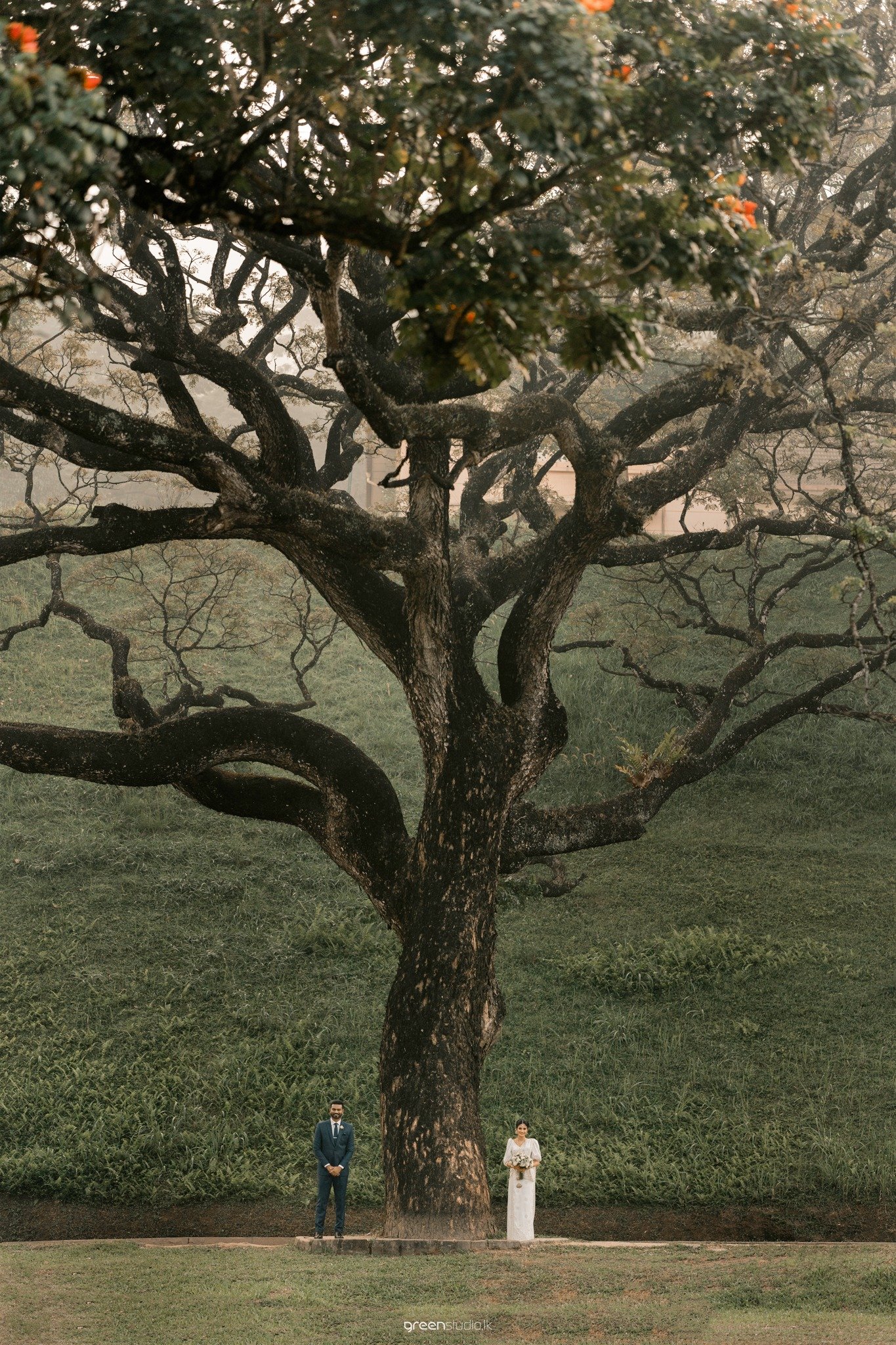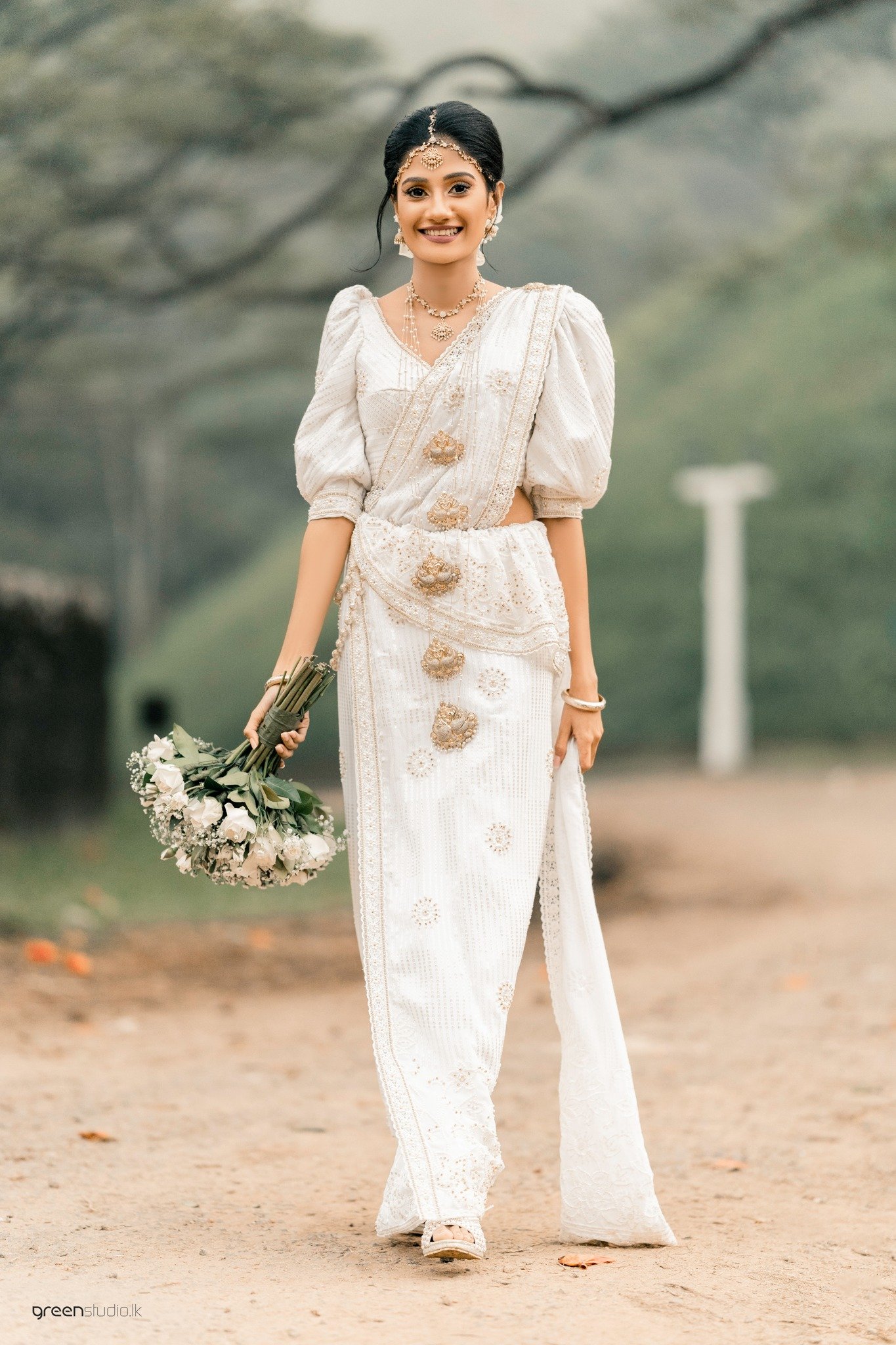 Her Kandyan saree shimmered with beadwork; orchids tucked into her bun, she looked up and the whole group fell into an easy walk, bouquets bouncing, jokes flowing.